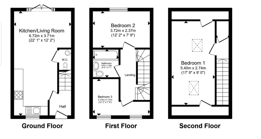 Bedroom 3 7′ 9″ max x 12′ 2″ max ( 2.36m max x 3.71m max )