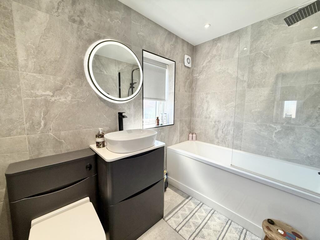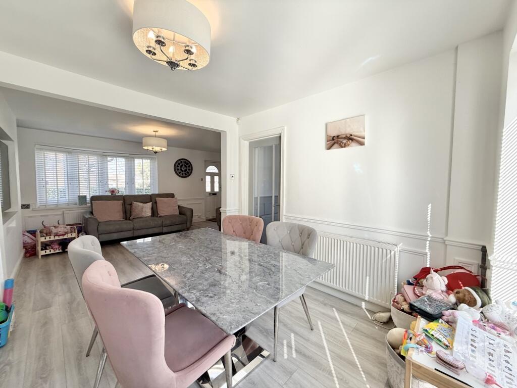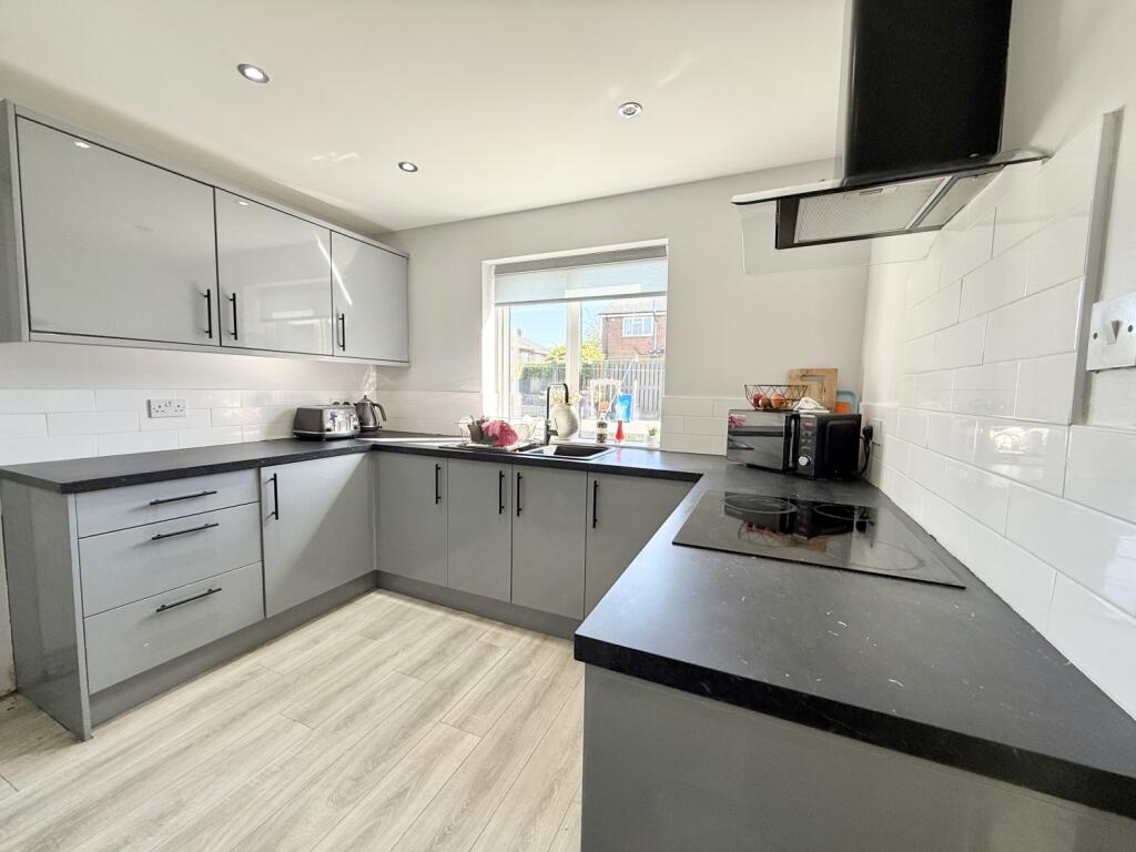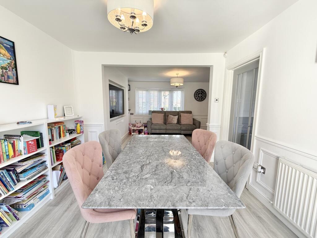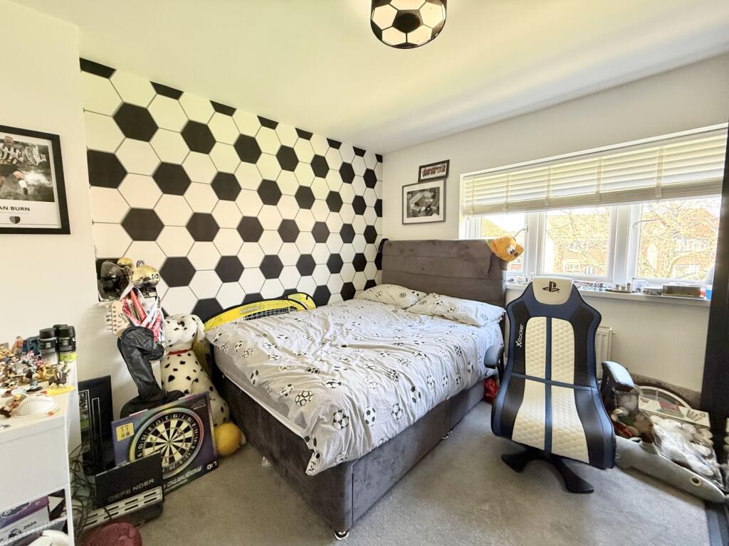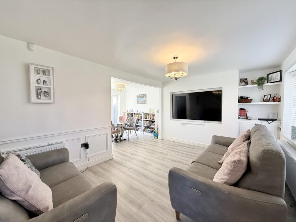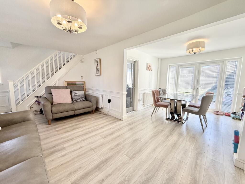 A beautifully presented and larger-style three-bedroom semi-detached home, Rochdale Road sits pleasantly set back from the street and enjoys an attractive outlook over a lovely green. The property offers generous living space throughout, beginning with a spacious lounge featuring a charming bow window that leads seamlessly into the dining room, where double doors open out to the rear garden. The kitchen is fitted with integrated appliances and provides access to a useful utility room that houses the combi boiler. Upstairs, the first-floor landing leads to three well-proportioned bedrooms, with bedrooms one and two benefiting from fitted wardrobes. A modern family bathroom completes the floor. There is also loft access via a pull-down ladder; the loft is fully floored and includes a Velux window, offering excellent additional storage. Externally, the property boasts a good-sized rear garden, mainly laid to lawn with both patio and decked areas ideal for relaxing or entertaining. A shed provides extra storage, and gated side access adds convenience. To the front, a neat lawned garden enhances the kerb appeal. The home further benefits from double glazing, gas central heating and solar panels. Situated in a popular and well-connected location close to local amenities and transport links, this is an ideal property for first-time buyers and growing families seeking space, comfort and a welcoming neighbourhood.